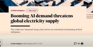 L’approvvigionamento energetico è una delle tante sfide che le economie più sviluppate devono vincere se vogliono rimanere tali. Sul Financial Times del 17 aprile 2024 un articolo molto interessante collega due mondi, non sempre associati: il tema dell’Intelligenza Artificiale e quello, appunto, dell’approvvigionamento energetico (data center)