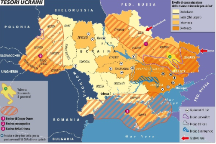 Le ricchezze di cui sopra, non sono più solo nelle mani di Kiev. La maggior parte di queste risorse si trovano nel Donbass e nelle Regioni orientali del Paese. Circa il 20 per cento di queste risorse si trovano in territori già controllati dalla Russia.
